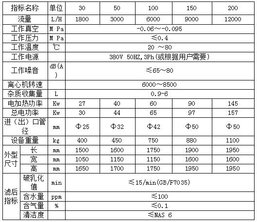 帶封閉外罩離心式濾油機(jī)參數(shù)表: