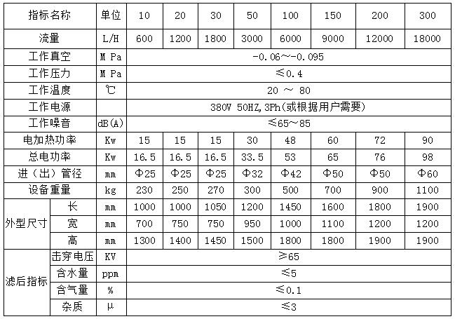 J系列變壓器油封閉式真空濾油機(jī)參數(shù)表: