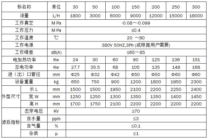 雙級變壓器油濾油機(jī)產(chǎn)品參數(shù):