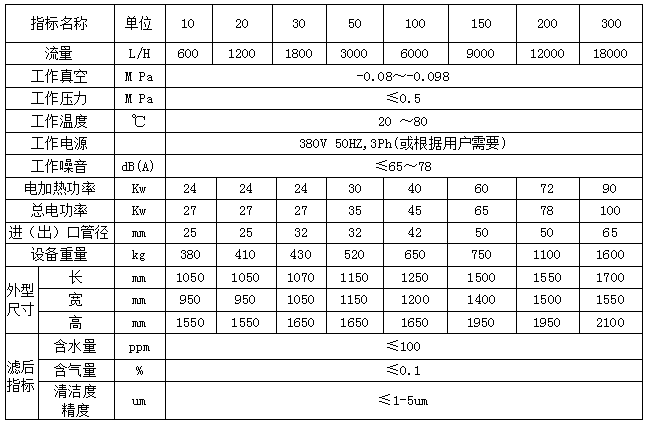 T系列帶外框多功能液壓油濾油機參數(shù):