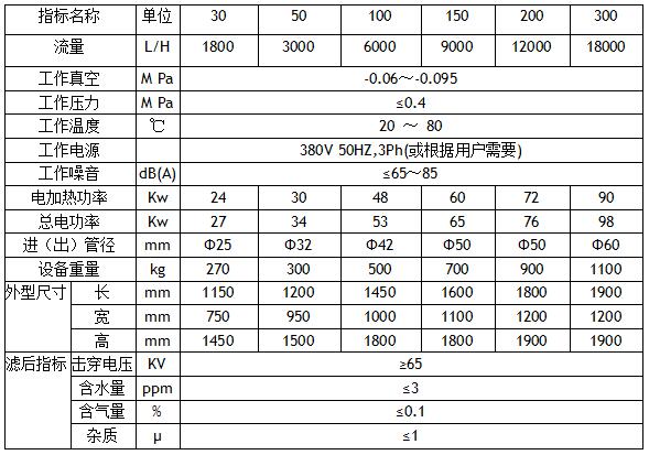 D系列高效絕緣油真空凈油機(jī)參數(shù):