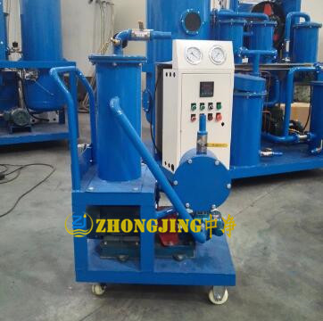 由初濾器、油泵和過濾裝置組成。初濾器為一筒狀金屬網(wǎng),阻止不純凈油中較大的固體顆粒進(jìn)入油泵。油泵通常為齒輪泵,輸送不純凈油進(jìn)入過濾裝置。過濾裝置為一小型手工壓緊的板框壓濾機(jī),用專用濾紙作過濾介質(zhì)。不純凈油在油泵壓力作用下進(jìn)入板框壓濾機(jī),透過濾紙成為濾清油。油中的固體雜質(zhì)被截留在濾紙表面,少量的水分被濾紙的毛細(xì)孔吸收。過濾壓力通常不大于0.3兆帕。當(dāng)濾紙表面沉積雜質(zhì)太多,過濾壓力升高到0.35兆帕?xí)r,或當(dāng)濾紙吸收的水分接近飽和,濾清油中殘留的水分不再降低時,應(yīng)停機(jī)更換濾紙。油的粘度較高時,可預(yù)熱以降低粘度后再行過濾。這種濾油機(jī)只能除去固體雜質(zhì)和少量水分,適用于一般電器用油和潤滑油的提純。當(dāng)油中含水分和雜質(zhì)過多時,須經(jīng)預(yù)處理后再送入濾油機(jī)。普通濾油機(jī)的處理量為25~200升/分。過濾裝置的方形濾框有200毫米、250毫米兩種框內(nèi)邊長。濾板和濾框用鑄鐵或聚丙烯制成。